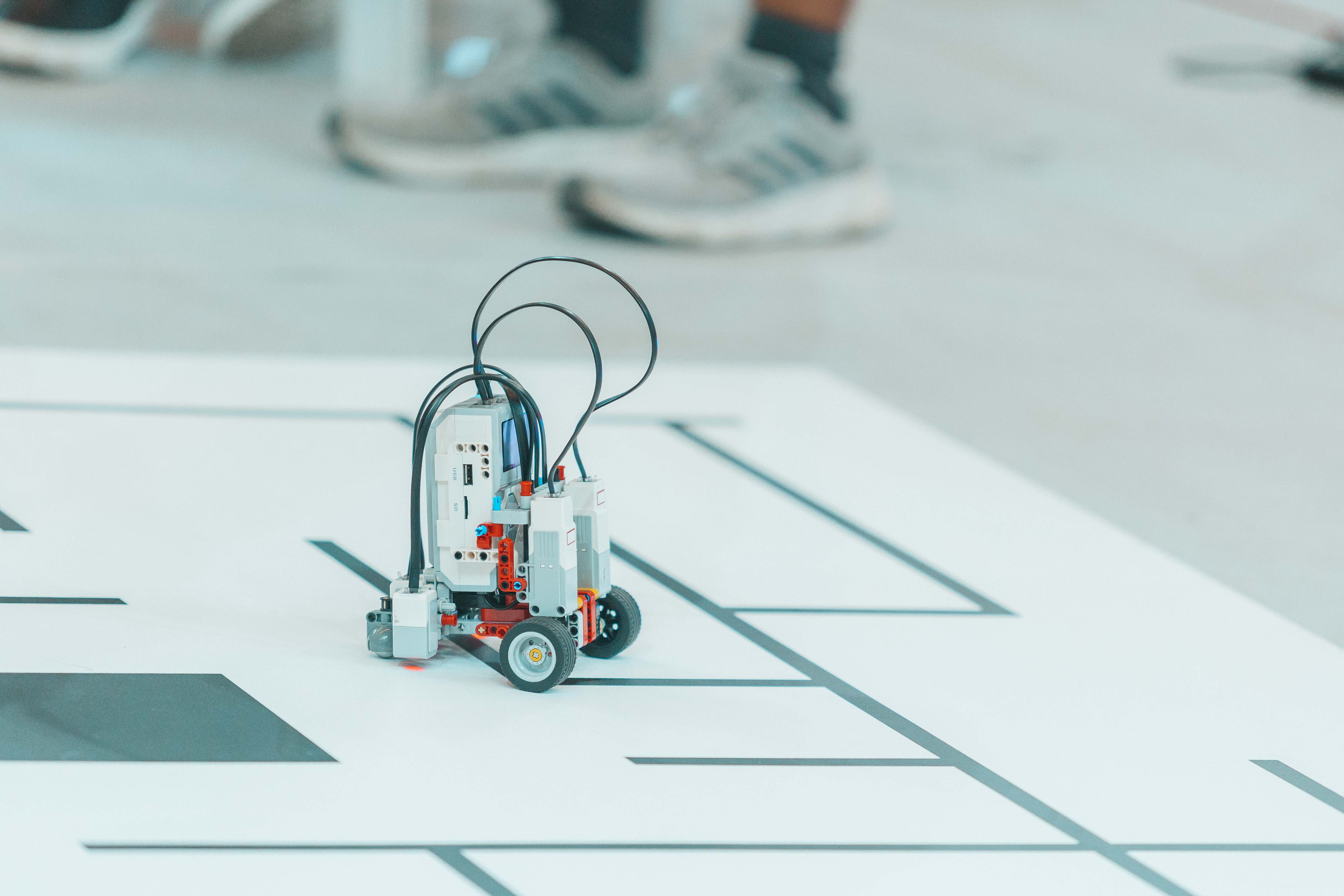 The Maze Line Following challenge is a variation of the well-known Maze Solving challenge, except that the maze is bounded by various forms of black lines that the robot must interpret, avoid the various dead-ends that may exist, in order to follow the correct path to reach the exit before the Minotaur reaches it!